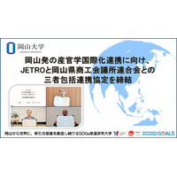 【岡山大学】岡山発の産官学国際化連携に向け、JETROと岡山県商工会議所連合会との三者包括連携協定を締結