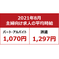【2021年8月主婦求人の平均時給】パート・アルバイト:『1,070円』、派遣:『1,297円』