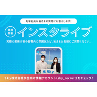 Sky株式会社は、Instagramの学生向け情報を発信する公式アカウント(sky_recruit)にて、視聴者からの…