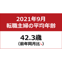 【転職主婦の平均年齢調査 2021年9月】42.3歳(前年同月比-0.4歳)