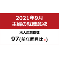 【主婦の就職意欲調査 2021年9月】主婦求人の応募指数97(前年同月比-24)
