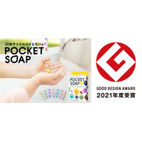 グッドデザイン賞受賞!ウイルスを可視化する30秒サイズの石けん「POCKET SOAP」。子どもたちに手洗いの必要性を親しみやすく的確に訴求した、公衆衛生性の高いアプローチが評価されました。