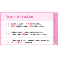 産後辛かったことランキング、第3位「寝れなかったこと」、第2位「24時間の育児」を抑え、第1位は・・・? 6割以上のママが「産後ケア施設」を利用したかった...と切実な声
