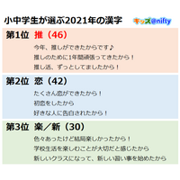【調査結果】小中学生が選ぶ2021年の漢字 第1位は「推」!~「キッズ@nifty」にて『小中学生が選ぶ2021年の漢字』を発表~