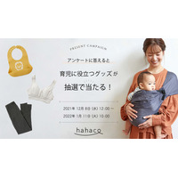 母と子のコンシェルジュ「hahaco」より、抱っこ紐や育児用品等が当たるアンケートキャンペーン実施中!2022年1月11日(火)まで!