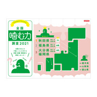 全国「噛む力」調査。「噛む力」が最も高いのは秋田県!ランキング上位都道府県の共通点は“ガム” ! 47都道府県毎に20代~60代の男女100名ずつを対象とした、全国「噛む力」調査を実施いたしました。