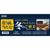 人気の電気ケトルを含む、デロンギ・キッチン家電*が対象!抽選で400名様に1,000円分のデジタルギフト券が当たる!買う前に当たる!デロンギ・キッチン 冬のご褒美キャンペーンを開催