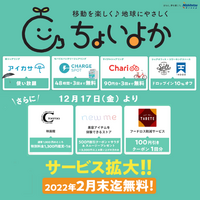 「移動を楽しく、地球にやさしく」サブスクリプション型サービス「ちょいよか」の提供サービスを拡大いたします!