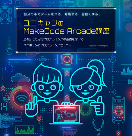 このたび、それらの専門的な要望のうち「ゲーム制作に関する学び」のニーズに応えるため、「ユニキャンのMakeCode Arcade講座」を開講します。本講座では、Microsoft社が提供するプログラミング学習プラットフォーム「MakeCode Arcade」を利用してゲームを作成するほか、ゲーム機を組み立てるモノづくりの要素、自作ゲームを用いて競技を行うeスポーツの要素を取り入れることで、ゲーム制作を様々な角度から体験いただけます。