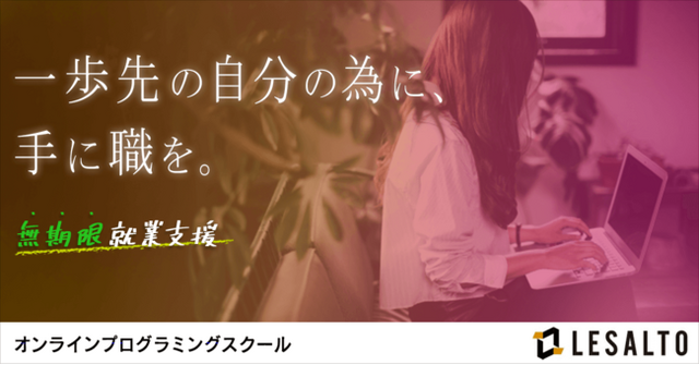 IT技術者の支援やシステム開発を手掛ける株式会社SALTO(代表取締役社長:松山純輝)では【IT・教育・就業支援】が一体となったオンライン完結完全就業支援型プログラミングスクール【LESALTO】を運営しております。学生さんには完全無料でプログラミング学習と就活サポートをご提供しています。いよいよ就活が本格的にスタートする22卒の学生さん、また就活はまだ先だけどプログラミングに興味のある学生さんも無料でご利用いただけます(LESALTO学生さん専用登録ページ:https://lesalto.jp/bulkentry)。