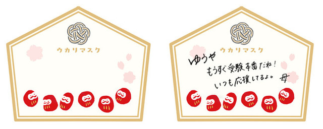 肌に優しく、快適なマスクで集中力UP ! 合格を祈願するこの時期にぴったりな、絵馬のデザインにメッセージを記入いただけます。