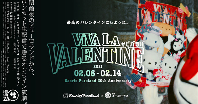 劇団ノーミーツ(主宰:広屋佑規・林健太郎・小御門優一郎)は、株式会社サンリオエンターテイメント(代表取締役社長:小巻亜矢)が運営するサンリオピューロランド(以下、ピューロランド)とタッグを組み、2月6日(土)、7日(日)、11日(木)、13日(土)、14日(日)の5日間、バレンタインをテーマにしたオンライン演劇「VIVA LA VALENTINE(ビバ ラ バレンタイン)」を開催します。