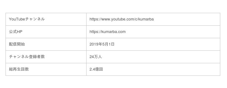 クマーバチャンネルは、お子さんがキャラクターと一緒に楽しく成長できるエンタメ知育チャンネルです。「未就学児の想像力と表現力を豊かにし、可能性を広げる」ことをテーマにコンテンツを制作しています。YouTubeで良質なコンテンツを配信することで、いつでもどこでも楽しみながら心身ともに成長できることを目指しています。