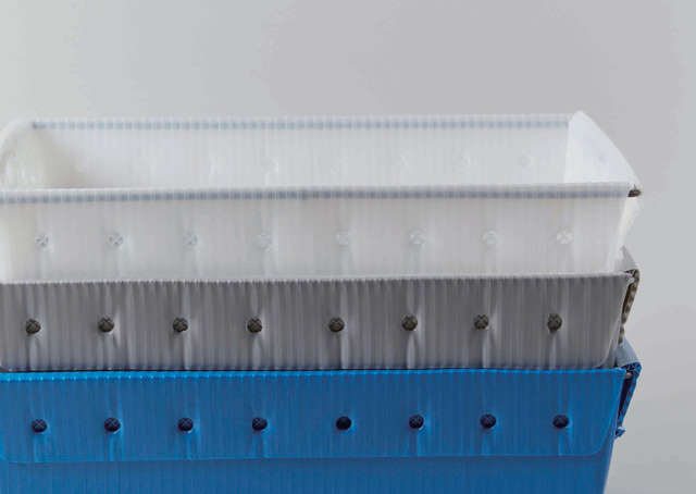ポリプロピレン通函、ポリエチレン通い箱、市場のかご、ポリエチレン・ジュース保存容器、蝋引き紙袋、コットンメッシュバッグなど