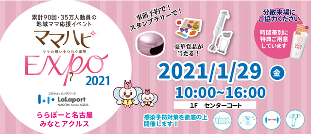 1/29(金) 10:00~16:00 「ママハピEXPO@ららぽーと名古屋みなとアクルス」