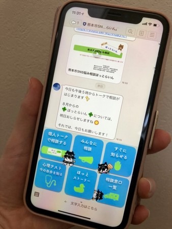 熊本市教育委員会は、SNSを活用した心のケア相談「ほっとらいん」を実施しています。利用方法は、学校などから案内されたQRコードを読み取り、子どもたち自身がLINEから友だち追加して登録します。