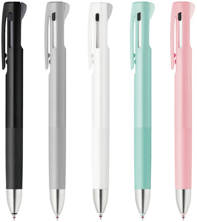 2.1本で黒・赤2色のボールペンとシャープペンが使えるのに、スリムなボディ。従来の単色のブレンと同サイズを実現しました。