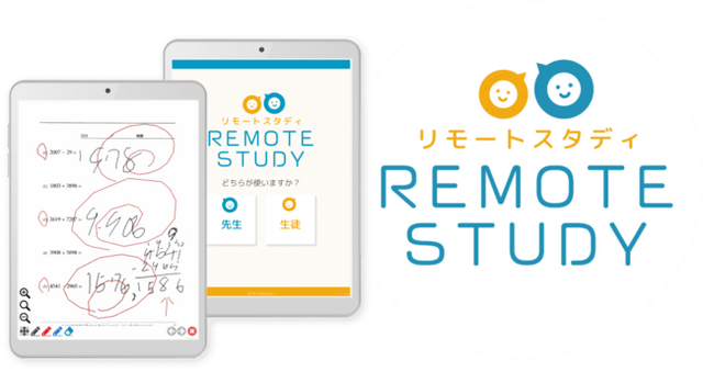 リモートスタディは「先生」と「生徒」が、それぞれの端末で、テキスト(PDF形式)を共有し、お互いに自由に書き込みができるアプリケーション。skypeやZOOM等のテレビ会議システムのみでのオンライン授業では、生徒の手元(解法)がみえず、的確なアドバイスが困難です。既存のシステムに リモートスタディを組み合わせる事で、まるで、先生がその場にいるようなオンライン授業が実現可能になります。
