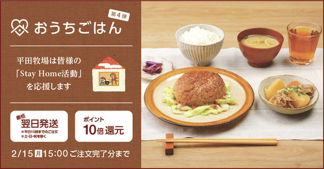 株式会社平田牧場(山形県酒田市/代表取締役社長 新田嘉七)は、緊急事態宣言発令など直近の情勢を鑑みまして、2021年1月21日(木)より公式オンラインショップにて継続開催している「おうちごはん特集」の第4弾として、対象商品のポイントを通常の10倍還元とし、対象の冷凍商品セットは15時までのご注文で最短で翌日に発送(最短で翌々日配送)を致します。また、冷蔵商品と平田牧場が厳選したお肉にぴったりの無添加調味料をセットした、配送日指定のお届で、すぐに使える「お料理かんたん!調味料付きセット」を販売致します。更に、例年、元旦お届けで大人気のお得な「福袋」を数量限定で再販売いたします。