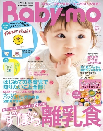 『Baby-mo(ベビモ)』は3・6・9・12月15日、 年4回発行の育児総合誌。生後0カ月から1才半ごろまでのお子様をもつママ&パパ向けに、 赤ちゃんの健康、 お世話、 病気、 ファッション、 遊び、 離乳食など様々な情報で、 ママ&パパの「今だけの特別な時間を大切にしたい」「わが子の気持ちを知りたい」「守りたい」をサポート。 楽しくて幸せな育児ライフを応援しています。