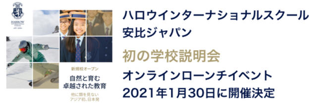 岩手県八幡平市安比高原に2022年8月の開校予定のハロウインターナショナルスクール安比ジャパン(以下、ハロウ安比校)は、2021年1月30日(土)に、開校する学校紹介をオンラインイベントで開催いたします。