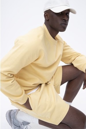 本コレクションは、Gapオリジナル素材のカーボナイズドフレンチテリーを採用。カーボナイズドフレンチテリーとは、特殊なブラッシング技術によって、最高級にソフトでふんわりとした肌触りに仕上げ、生地表面の起毛を最小限に抑えるカーボナイズド加工と、布地の片面がループ状の柔らかい糸の束で、もう片方の表面が滑らかで柔らかなテリーニットでできているフレンチテリー素材を合わせて誕生した素材です。カーボナイズド加工とフレンチテリー素材を合わせることで、吸収性が高く、軽量で、吸汗速乾に優れ、ふわふわとソフトで肌触りがよく、シーズンレスで心地のよさを体感いただけます。
