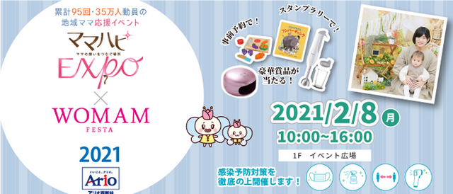 2/8(月) 10:00~16:00 「ママハピEXPO×WOMAMフェスタ@アリオ西新井」