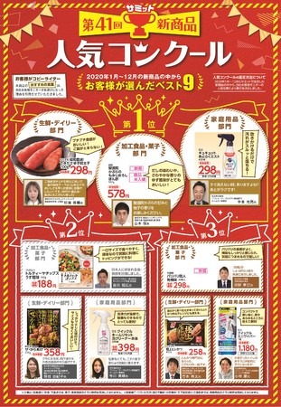 第41回『サミット新商品人気コンクール』入賞商品が決定いたしました。入賞商品はサミットで昨年1年間に販売した新商品の中から、サミットのお客様モニター約60名による人気投票で順位を決定したものです。入賞商品はチラシによる紹介セールを実施いたします。