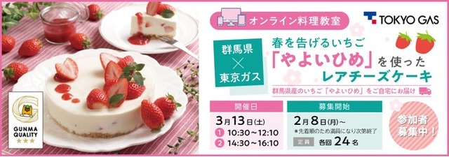 今回のオンライン料理教室は、群馬県産のいちご「やよいひめ」がご自宅に届く特別企画で、東京ガス料理教室と群馬県がコラボレーションして開催します。