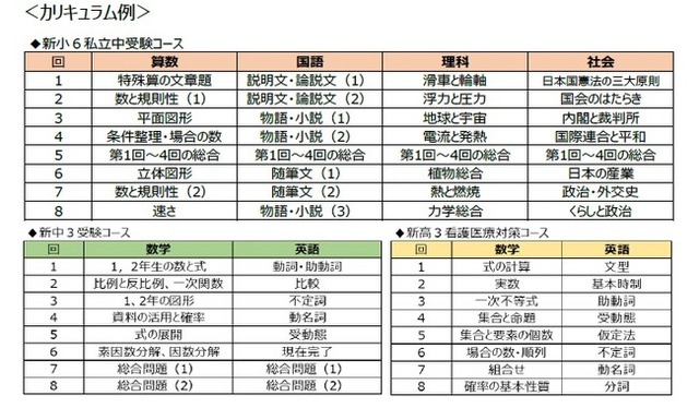 サピックス、早稲田アカデミー、ena等の進学塾フォローコースを順次開講いたします。