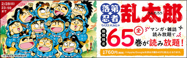 BOOK☆WALKER マンガ・雑誌 読み放題 『落第忍者乱太郎』全65巻が読み放題!