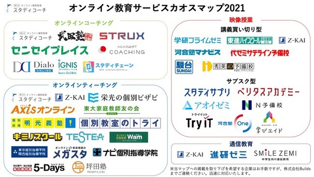 教育やフィットネスなどサービス業界のデジタルトランスフォーメーション(DX)を推進する株式会社Buildsは(ビルズ、本社:東京都港区、代表取締役社長:橋本竜一、以下「当社」)は、この度、日本国内における小中高生向けの「オンライン教育サービス」のカオスマップを公開します。