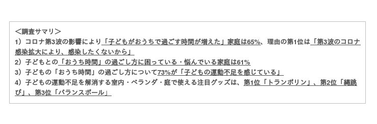 「コロナ第3波の影響下における子育て家庭の過ごし方」アンケート調査結果