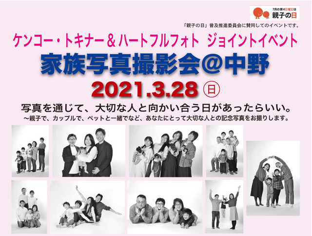 株式会社ケンコー・トキナー(本社:東京都中野区、代表取締役社長:山中 徹)は、家族の絆をテーマに結婚、子ども誕生、親子の写真の撮影を行っている「Heartful Photo」による「家族写真撮影会」を開催。開催日時は2021年3月28日(日)。ケンコー・トキナーサービスショップ内撮影スタジオ(東京都中野区中野5-68-10)にて実施いたします。