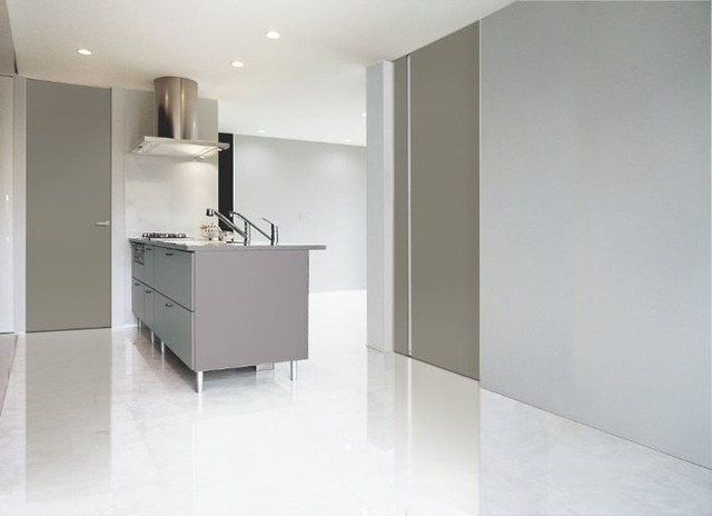 室内ドア専門メーカーであるKAMIYAの商品の特徴は、住空間に開放感を与えるなど、「住む人の生活をドアでいかに豊かにできるか」を常に考えて造られていること、そして高いデザイン性とそれを支える国内最高レベルの品質です。木製のドアは、高さを上げれば上げるほど反りやすくなってしまうのがネックであるため、フルハイトドア(R)ができる以前は背の高いドアを作るのは困難な状況でした。KAMIYAは反りを抑制する構造を自社で開発することでデザインの幅を拡大。他社にはできなかった反りが少なく、高さが天井まであるというドアを開発しました。更に枠が完全に見えない独自の納まりを実現して、部屋に開放感を与えるドアとしてリリースされたのがフルハイトドア(R)です。毎年様々な海外の展示会を回り、ドアのトレンドや最新の技術などを研究し、KAMIYAにしか作れないデザイン性の高い製品や、これまでにない技術を組み込んだ製品を開発し続け、2019年より海外の展示会にも出展し、ヨーロッパや中東で注目されています。また独自の開発方法により、他社であれば2~3年ほどかけて1枚の新作ドアを発表するところ、年に数枚ずつ新作を発表し、充実したラインナップを常に揃えています。