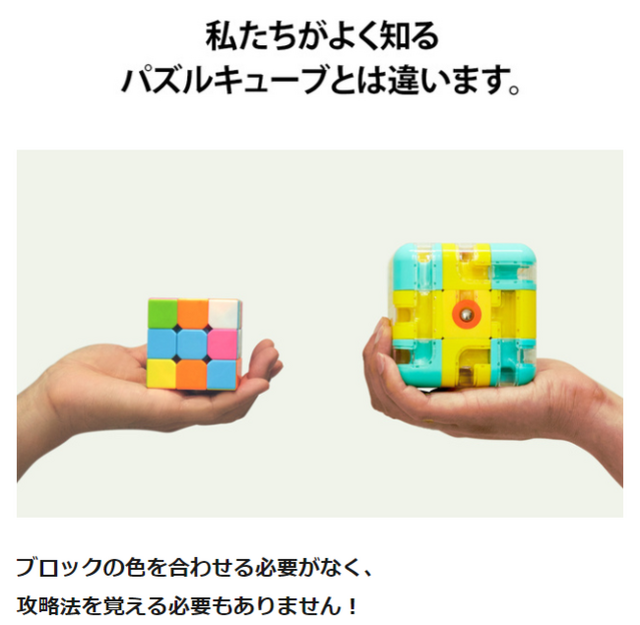 パズルキューブのようにブロックの色を合わせるのではなく、入り口から出口までボールを運ぶための道をブロックを回して作っていきます。パズルキューブの常識を覆す、色合わせや攻略法がない全く新たな頭脳体操TOY「U.CUBE」