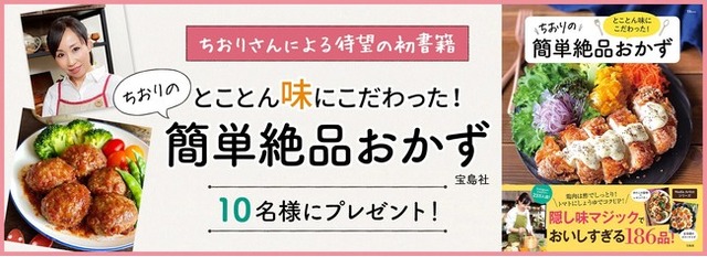 【「とことん味にこだわった!ちおりの簡単絶品おかず」(宝島社)を10名様にプレゼント!】