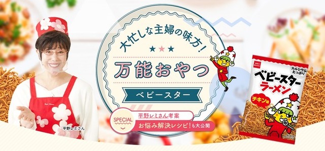 平野レミさん考案!お悩み解決ベビースターアレンジレシピ https://www.oyatsu.co.jp/product/bannou/