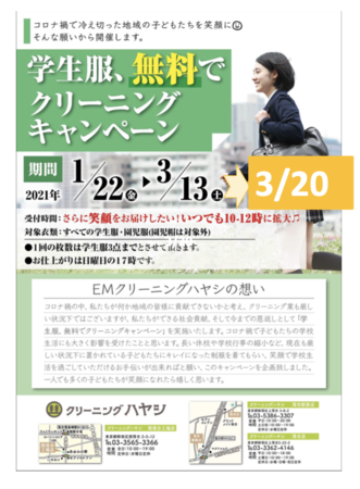 のべ20,000着を超える学生服を全国のクリーニング店が無料でクリーニングしております。