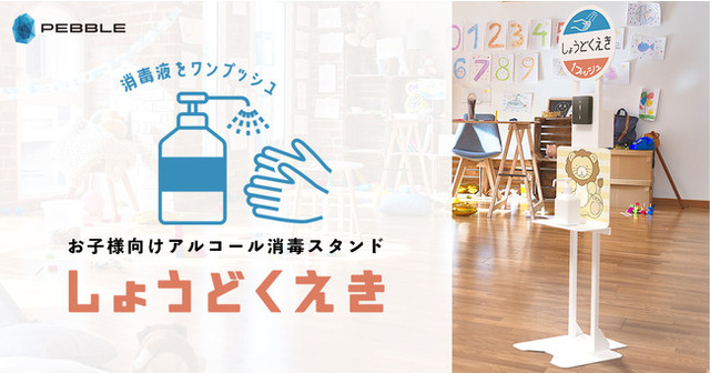 ウイルス感染症対策推進企業のペブルコーポレーション株式会社(本社:東京都江東区、代表取締役:藤方 裕伸、以下ペブルコーポレーション)は、お子様が使いやすい高さに消毒液を設置できる子供向けアルコール消毒スタンド『しょうどくえき』の予約販売を開始いたしました。