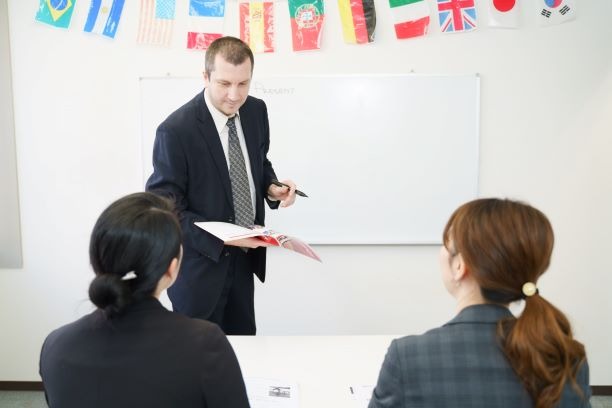 外国人講師より、実際の様々なビジネスの場での会話シチュエーションから、会話力を鍛えるグループレッスンに加え、個人の強化すべきポイントに集中したプライベートレッスンとの組み合わせで会話スキルを身に着ける。