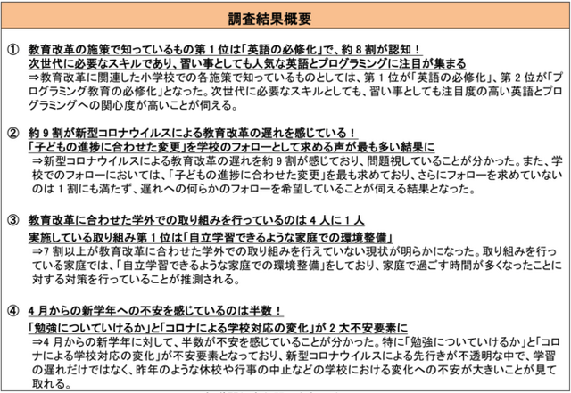 【「2021年 2020年度教育改革並びに新学年に関する調査」調査概要】