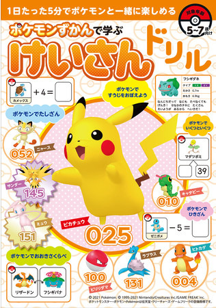 『ポケットモンスター』シリーズは、初代作である『ポケットモンスター 赤・緑』が、1996年2月27日に発売され、今年で25周年。その『ポケットモンスター 赤・緑』で登場する151匹のポケモンの図鑑番号を使って、たし算やひき算をするドリルです。この計算ドリルを通して、これからポケモンファンになる子どもたち、もっとポケモンを好きになる子どもたちが増えればと思います。