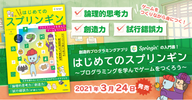 株式会社しくみデザインは、2021年3月24日(水)に創造的プログラミングアプリ「Springin’(スプリンギン)」でゲームをつくりながらプログラミングが学べる書籍『はじめてのスプリンギン ~プログラミングを学んでゲームをつくろう~』を、株式会社技術評論社より発売いたしました。