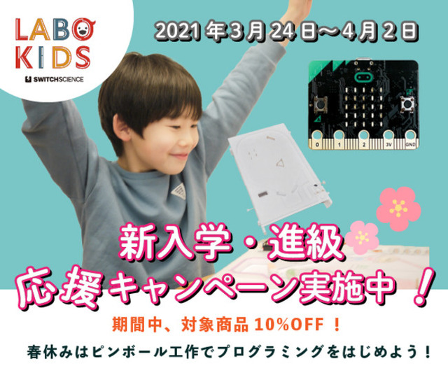 ピンボール工作キットと、ピンボール工作キットにプログラミング要素を付加できる追加パーツ2種を加えた、3商品が春休みキャンペーンの対象商品です。工作だけのキットから始めることで、プログラミングの経験がなくても気軽に取り組むことができます。