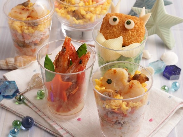 料理教室では、魚介を使った可愛いカップ弁当をご紹介します。リユースできるデザートカップに詰めたカップ弁当はピクニックにもおすすめです。