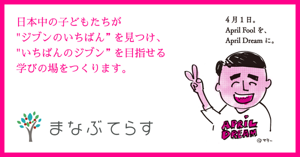 当社は、「April Dream 4 月 1 日は、夢の日。」に参加しています。このプレスリリースは「小中高校生向けオンライン家庭教師「まなぶてらす」(運営 株式会社ドリームエデュケーション 千葉県市川市 坂本七郎社長)」の April Dream です。
