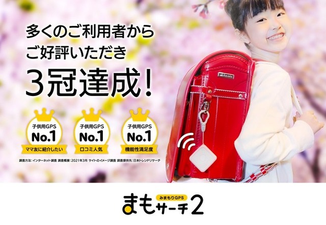 まもサーチは多くのご利用者からご好評いただき、子供用GPSに関する調査で「ママ友に紹介したい子供用GPS No.1」 「子供用GPS 口コミ人気 No.1」 「子供用GPS 機能性満足度 No.1」の3冠を達成いたしました。