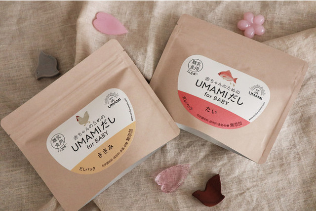 赤ちゃんのためのUMAMIだしシリーズは、食品添加物保存料を一切使用しない素材100%の無添加の離乳食用だしパックです。赤ちゃんの生涯にわたる「味覚の基礎づくり」を行う子育て中のママやパパをサポートしたいという思いのもと、本シリーズを展開中です。これまで、やさい、あわせ、こんぶ、かつおを発売しており、SNSでも数多くの高評価コメントをいただいております。