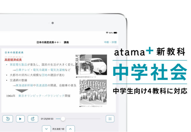 atama+の社会では、AIが一人ひとりの目標や理解度に合わせた「自分専用カリキュラム」を作成します。 暗記する内容が多い社会の特性をふまえ、一人ひとりに最適化した難易度・分量の教材を提供します。